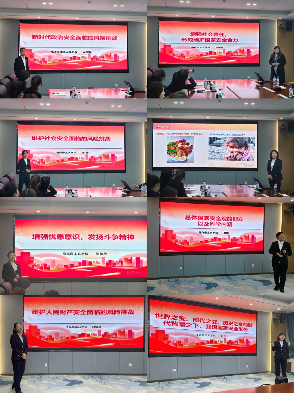 马克思主义学院院长侯君同志介绍了《国家安全教育》课程的开课情况,8名教师分别从《粮食安全》《财产安全》等八个专题为重点进行了教学展示,授课内容丰富详实、案例鲜明有说服力。