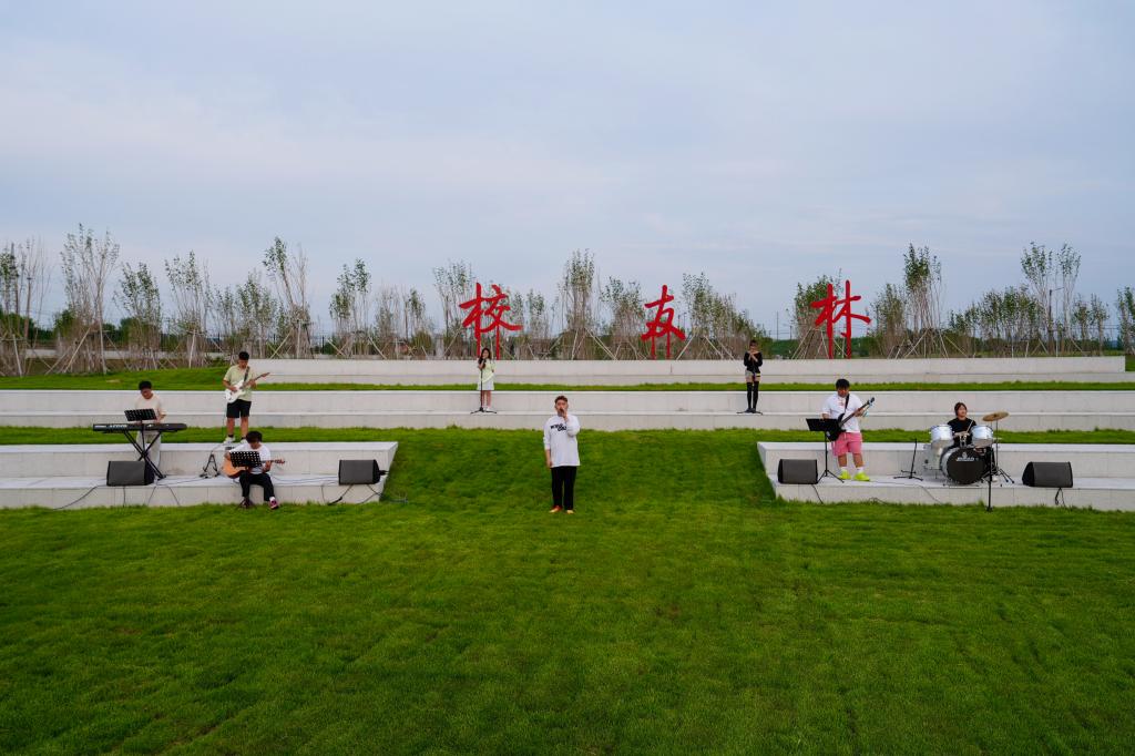 校友林地标区白鸽漫步、风筝飘扬,歌曲《理想》《小美满》《仰望星空》《青春印记》《未来我来》、器乐演奏《笑傲江湖》、乐队表演《我相信》等节目以青春旋律唱响时代强音,倾情展现了学校师生向上向善的精神风貌,充分彰显了师生艺术素养和五育融合成果。